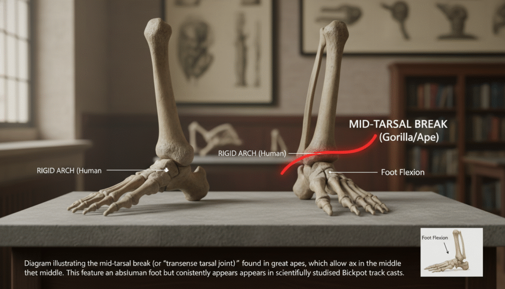 Bigfoot tracks show mid-tarsal breaks every time.