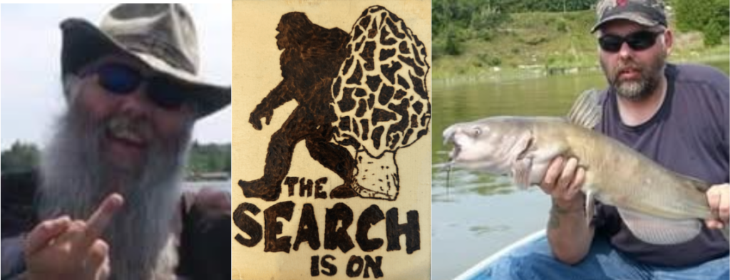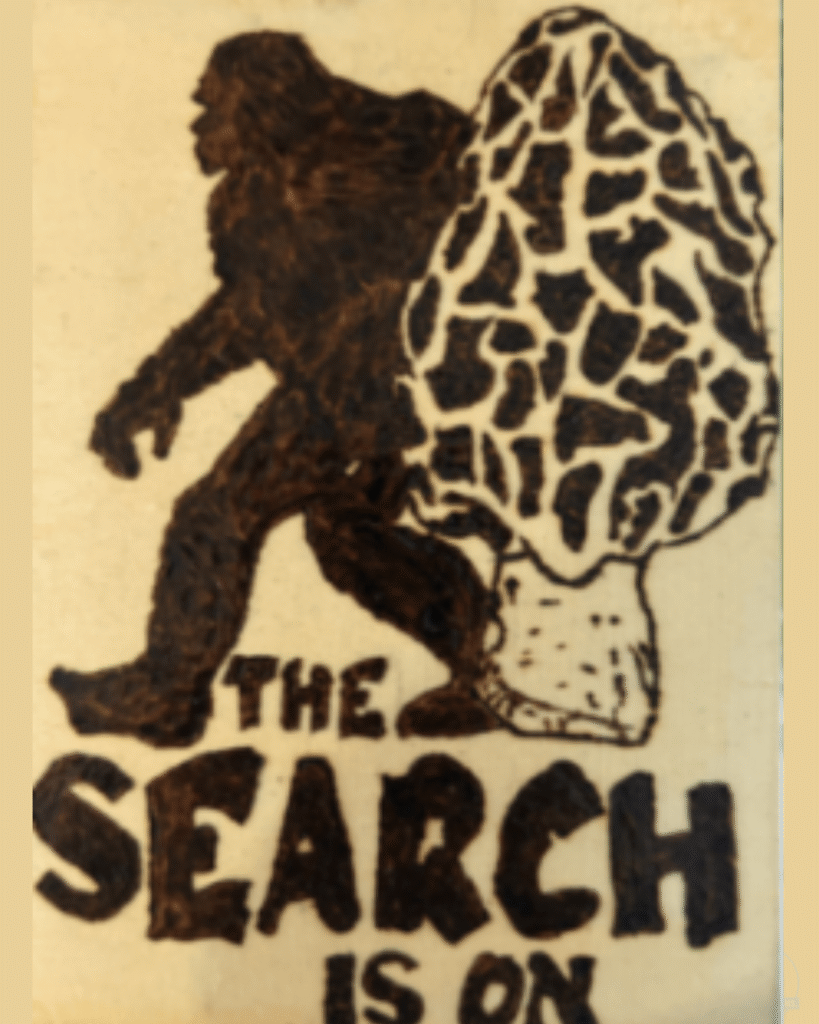 A picture of Bigfoot beside a giant morel mushroom with the words: